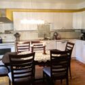 Grand salon et cuisine moderne.